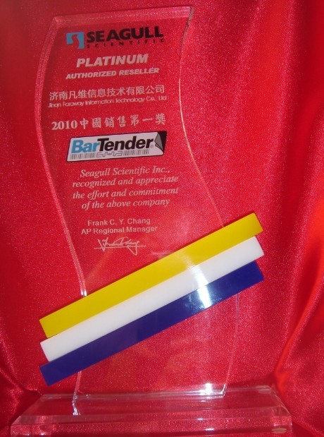熱烈慶祝濟南凡維信息技術(shù)有限公司榮膺2010年BarTender條碼打印軟件中國銷售第一獎